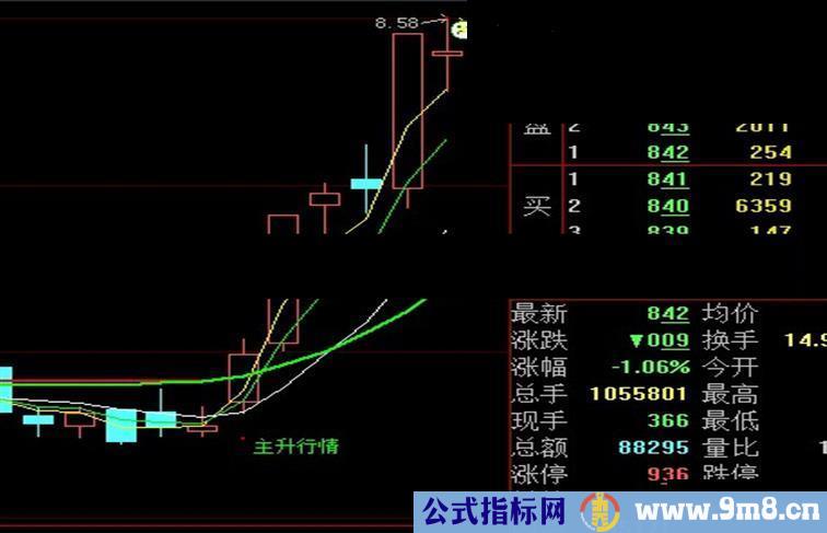 中轨:HHV(MA(H,13),13),COLORRED,LINETHICK2;