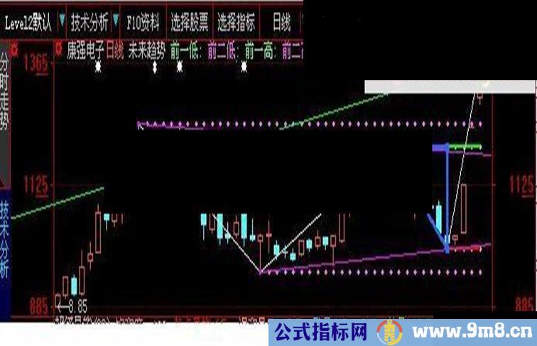 前二低:REF(L,BARSLAST(XX)),COLORFF66FF,POINTDOT,LINETHICK3;