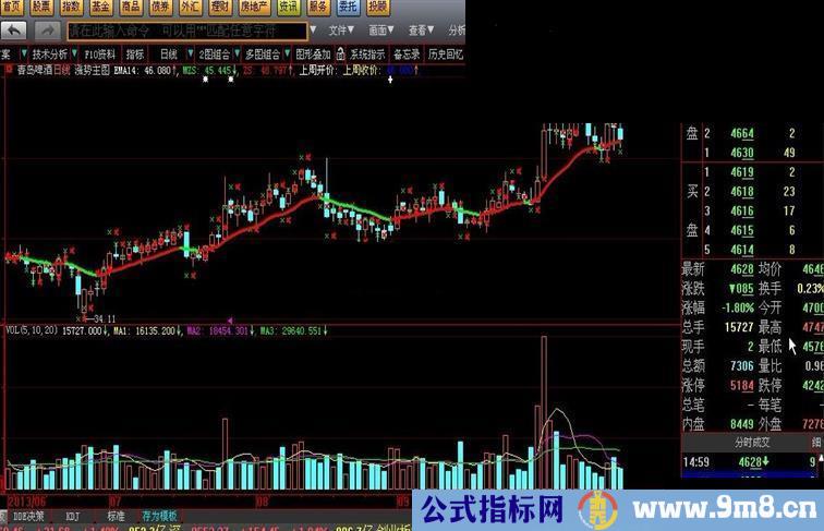 这里,我用MZS(绿*)表示 明天维持涨势的价格. 这MZS是随当日股价变化,而变动的.直到收盘时,MZS 就定了,