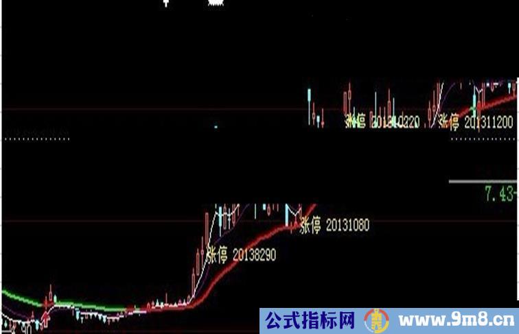 DRAWTEXT((C-REF(C,1))/REF(C,1)*100>9.5,OPEN,'涨停'+' '+STR(YEAR)+STR(MONTH)+STR(DAY)+STR(TIME)),COLOR00FFFF;