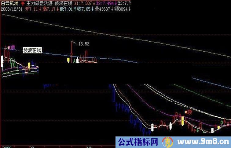STICKLINE(Var7<1*REF(Var7,1) AND Var9>1*REF(Var9,1),h,l,0.5,0),COLORGREEN;{绿-洗盘}