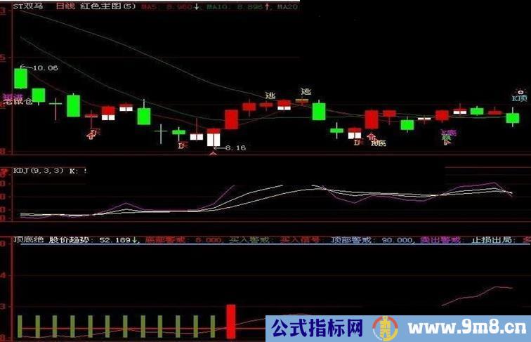 DRAWTEXT(FILTER(D2>0,5),H*1.03,'K顶'),COLORf0f000;{KDJ顶背离}
