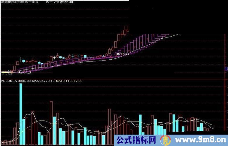 DRAWTEXT(REF(CROSS(VAR3,VAR4),2) AND VAR3>1.005*VAR4,VAR4,'★买入点'),COLORWHITE;