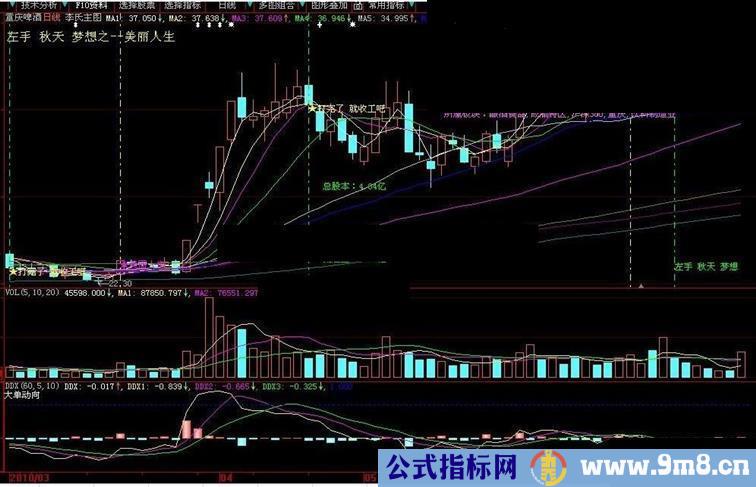 DRAWTEXTABS(3,10,'左手 秋天 梦想之--美丽人生'),linethick3,COLORyellow;
