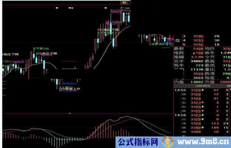 DRAWTEXT(CCI底部上升,L-0.5,'CCI底部上升');