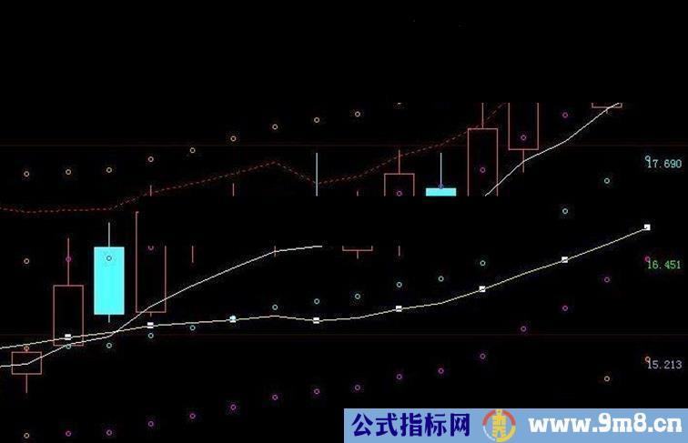 PARTLINE(中,中>=REF(中,1),RGB(0,255,255)),CIRCLEDOT;