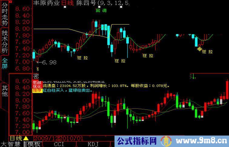 DRAWTEXTABS(30,15,'流通盘:'+CAPITAL/100+'万股,利润增长:'+FINANCE2(10)+'%。每股收益:'+FINANCE2(3)+'元。' ),color00DDDD;