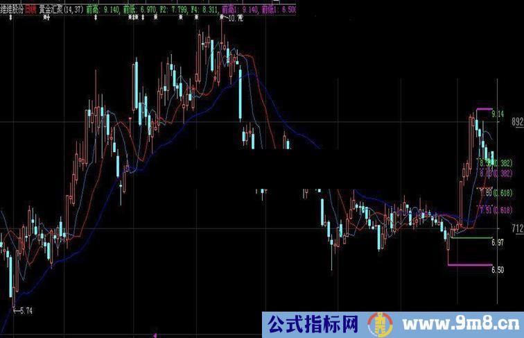 F14:((前高1-前低1)*0.618)+前低1,COLORff00ff,DOTLINE{LINEDASHDOT};