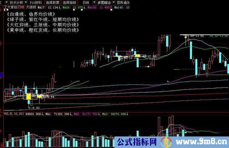 DRAWTEXTABS(5,70,'《黄申线、橙红亥线、长期均价线》'),COLORWHITE,linethick3;