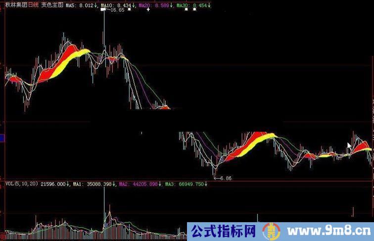 FILLRGN(MA(CLOSE,20),MA(CLOSE,30),MA(CLOSE,20)>MA(CLOSE,30),RGB(255,255,0));