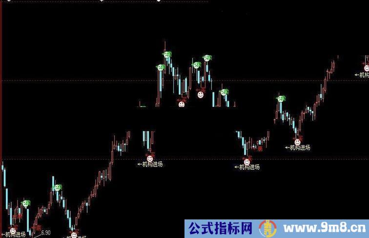 DRAWTEXT(CROSS(ZIG(3,8),REF(ZIG(3,8),1)),LOW*0.97,'←机构进场') ,
