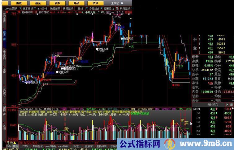 STICKLINE(((((CLOSE < REF(CLOSE,1)) AND (CLOSE < REF(CLOSE,1))) AND (HIGH > 逃遁)) AND (CLOSE < 逃遁)),CLOSE,OPEN,2,0),COLORFFA8FF;