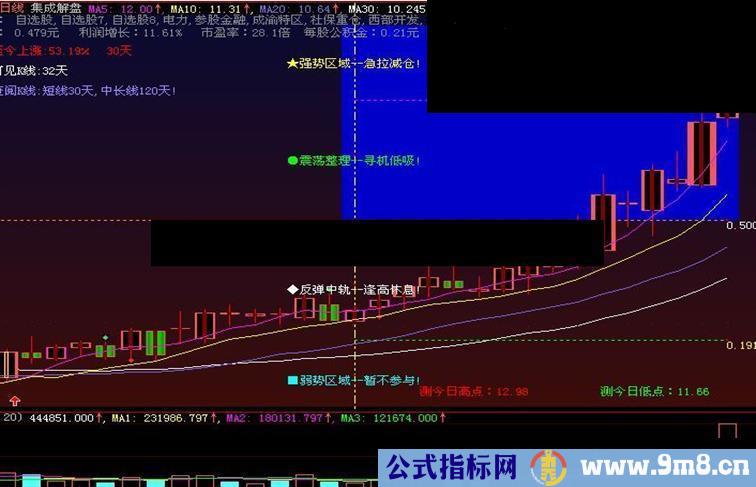 DRAWTEXTREL(580,950,'测今日高点:'+NUMTOSTRN(ref(预测明日卖点,1),2 )),Colorred;