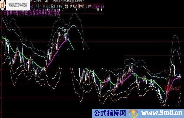 DRAWTEXTREL(10,0,'中轴是牛熊分界线.短线成本是短线分界线.'),LINETHICK4,ColorFF00FF;