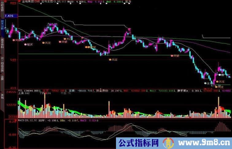 DRAWTEXT(CROSS(X4,X5),HIGH,'●减仓'),colorFA00D9;