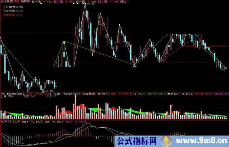 DRAWLINE(K2,IF(HZ,H,L),BARSTATUS=2,C,0),COLORGREEN,LINETHICK1; {最后的长期连线,连在收盘价上}
