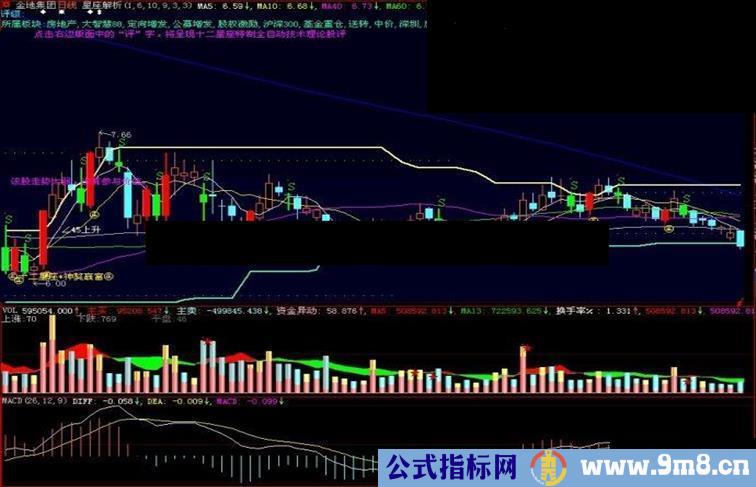 DRAWTEXTABS(40,30,'点击右边版面中的“评”字,将呈现十二星座特制全自动技术理论股评'),colorFF00FF,LINETHICK1;