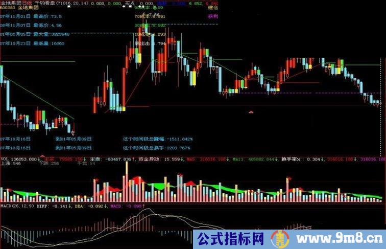 买点:CROSS(DIFF,DEA) AND DEA<0,LINETHICK0;JJ:=BARSLAST(买点);