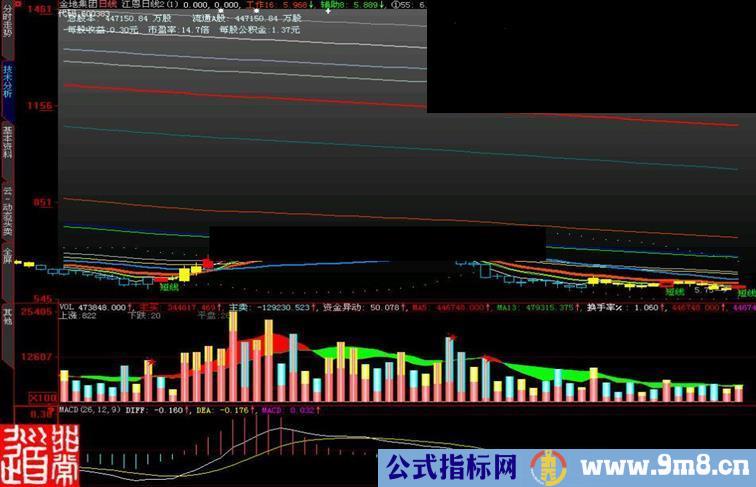 ④生命:eMA(CLOSE,453),colorred,linethick2;