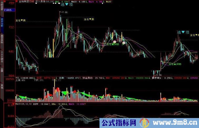 DRAWTEXT(CROSS(VA2,VA1),VA1*1.10,'全仓▼卖'),COLORYELLOW;