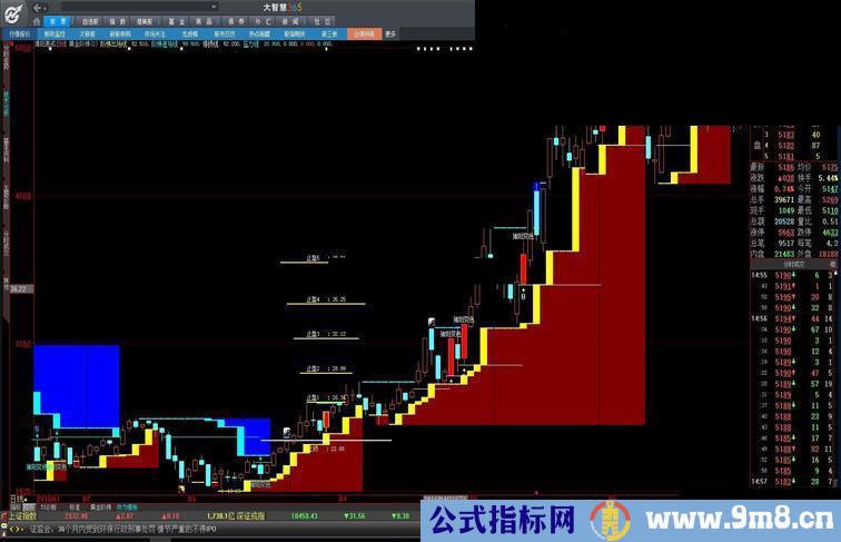 1.收盘价在黄色阶梯出场线上方表示短期上涨趋势,应伺机买入。