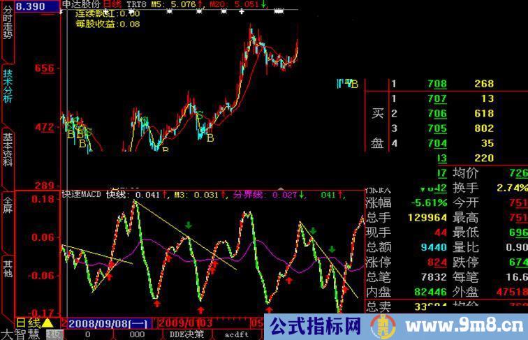 快速MACD,DIFF := EMA(CLOSE,12) - EMA(CLOSE,26); DEA := EMA(DIFF,9); MACD := 2*(DIFF-DEA); 快线:diff-dea; m3:ma(快线,3); 分界线:ma(快线,40); fillrgn(快线,m3,快线>m3,rgb(255,0,0),快线
