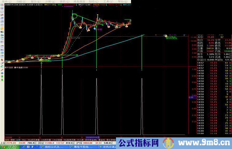 a1:=(h-c+o-l)/ref(c,1)<0.01; a2:=ma((c-o)/ref(c,1),3)>0.06; aa:=a1 and a2; 暴牛:if(count(ref(aa,1),15)>=1,0,aa);