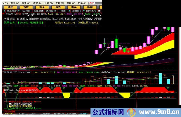 下面,一品以一个相对简单的思路,利用股价与均线、均线与均线之间的简单对应关系,编写成【趋势跟踪】副图指标,请喜欢指标而又依旧属于菜鸟级别、想适当进阶的朋友看过来!