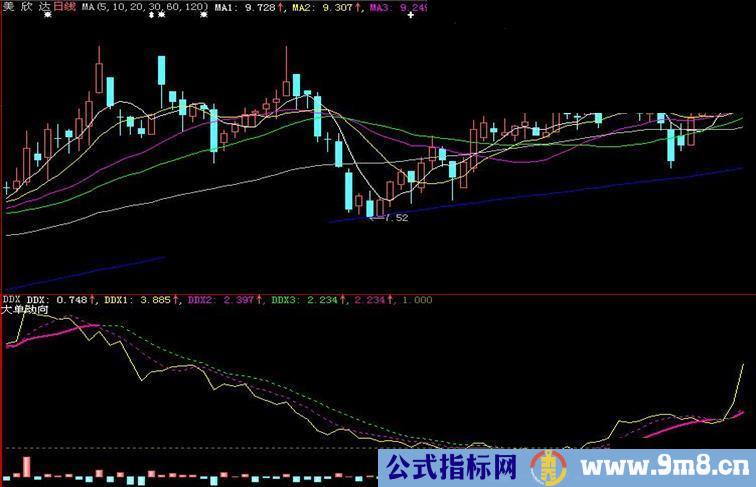 PARTLINE(DDX3,(DDX3>REF(DDX3,1))),LINETHICK2,Coloraa00FF;