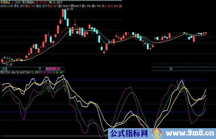 k:sma((CLOSE - LLV(LOW,9))/(HHV(HIGH,9) - LLV(LOW,9))*100,3,1),LINETHICK1;