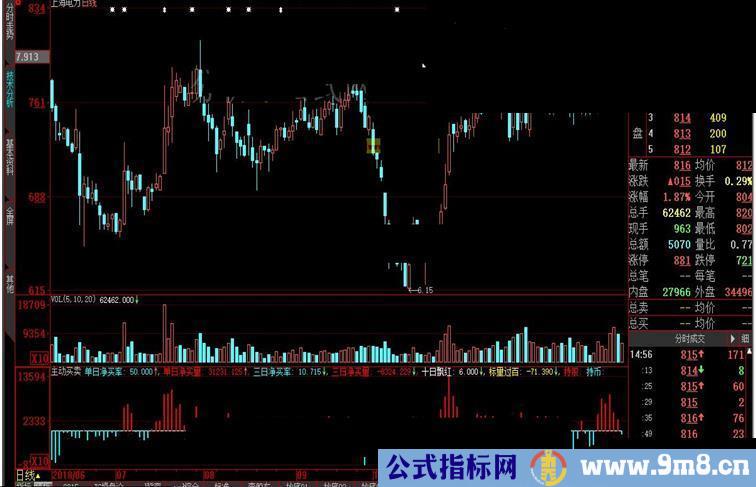 主动买:=IF(CLOSE>OPEN,BB*(HIGH-LOW),IF(CLOSE 主买:=主动买; 主动卖:=IF(CLOSE>OPEN,0-BB*((HIGH-CLOSE)+(OPEN-LOW)),IF(CLOSE 主卖:=-主动卖; 净买:=(主动买+主动卖); 单日净买率:净买/VOL*1000000,POINTDOT,COLORFFFF00; 单日净买量:VOL*单日净买率/100,POINTDOT,COLORRED; 三日净买率:SUM(单日净买率,3),POINTDOT,COLORFFFF00; 三日净买量:SUM(单日净买量,3),POINTDOT,COLORRED; 十日飘红:COUNT(三日净买量>0,10),COLORWHITE;{DDX飘红} 标量过百:三日净买量/EMA(三日净买量,500)*100,POINTDOT,COLORYELLOW; 持股:STICKLINE(三日净买量>0,0,三日净买量,3.5,0),COLORRED; 持币:STICKLINE(三日净买量<0,0,三日净买量,3.5,0),COLORFFFF00;