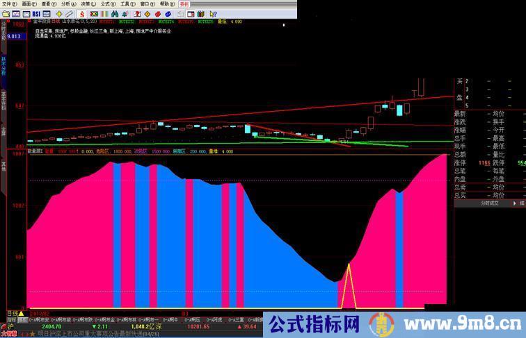 今天得到大智慧新能量潮公式,试着加一点东西(即量堆等方面的),再一看,所有的牛股都暴露无疑了,现提供源码,请高手做出能量潮红色,加量堆启动的公式,小散们会谢谢你的。不多言
