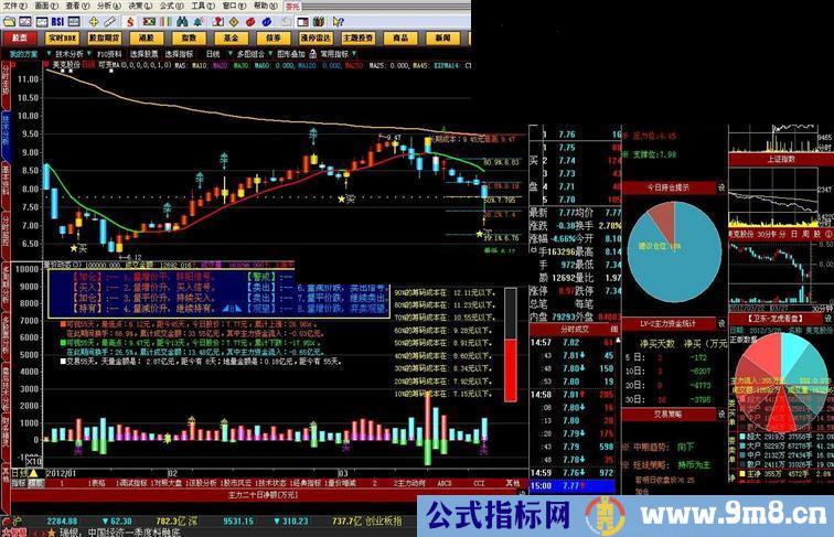据多个指标综合,可通过文字、数据、图表全面反映可视窗内股价走势、量能变化,主力资金流入流出状况。