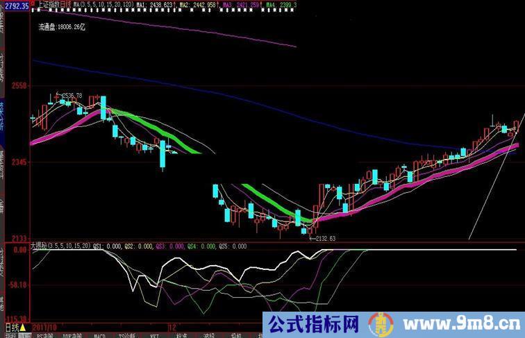 ㊣☆指标不是万能的,没有指标是万万不能的。再来一个指数的指标,就叫大揭秘吧;用法:看qs1-5线条发散的走向与趋势,向上,升势,qs1=0,关注,qs1=0,qs2=0,激进者跟进,随后,一旦qs<0,线条向下发散,出局。并与网上流行的奇特线指标对比,你会发现信号要提前的多。{来源于: 公式在线网}
