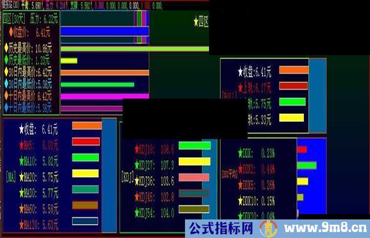 我们每时每刻都想知道我们的股票现在是处于什么状态,就要看【MA】【BOLL】【KDJ】【主力买卖---DDX】最好还要看【四区主图】(你应该有的)可以知道现在你的股票在哪一个区里----【四个分区】 就要一个一个去翻每个公式岂不麻烦,我们给自己建立一个【情报站】一个图全都能看到这一切真是一目了然,十分方便.