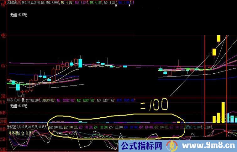 受到短线游子老师的鼓励,把最得力的指标拿出来与理想的朋友们分享,指标加密了,但可以使用。用法:1.看趋势线走势,变红色,转入上升趋势,可以操作;2.看qs1-qs9的値,如果有3个以上的QS=100,涨停,9个QS全部等于100,九九归一,大牛股。以最近的涨停股说事,看了都说好