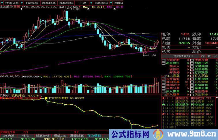 机构持仓:IF(N=0,上期持股比例,(上期持股比例+Sum(超大,N))),LINETHICK2,coloryellow;