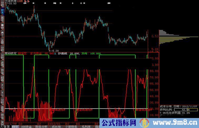 该指标对主力资金监控,同时也对趋势做明显提示,有明确的买卖信号,准确率很高,系统里精简了很多公式,唯独留下了他《筹码锁定》,
