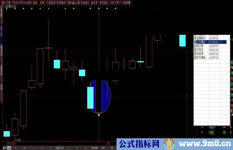 5、运用:打开任意一个K线图——点指标-----就可以看到你刚才导入的公式名称-----双击它-----你刚才选择的副图上就会出现这个指标了。