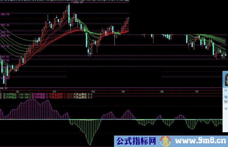 主力开始进: IF(V4>=0,V4,0),COLORFF00FF, LINESTICK;
