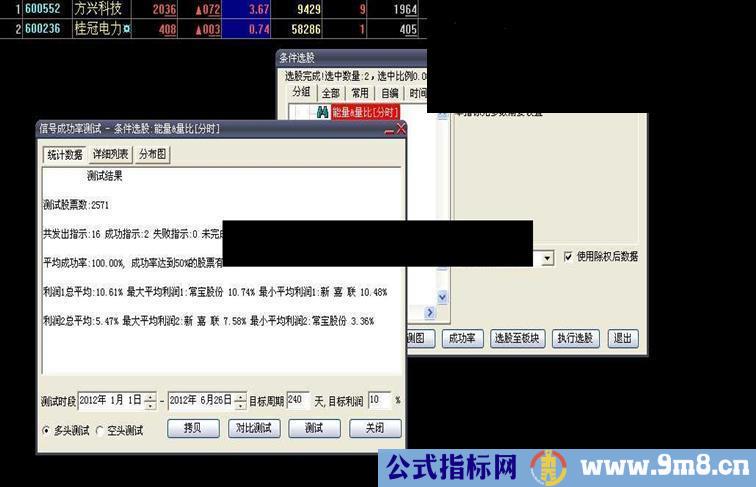 【6】这回我们不仅测试看多的成功率.还测试了看空的成功率.就是涨的可靠性.和跌的可能性同时对比.使得我们心中更有数.这一点我到建议是以后考察选股公式必须的办法.虽然测试不完全可信.但是比没有测试过就用还好一些.特别的是这回我们提倡的【双向测试】值得推广.