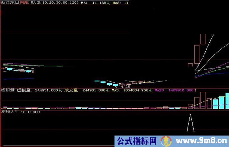 用法:周线图上副图出现信号以后(往往滞后两三周才启动,给大家足够的研究时间),如果均线处于多头排列的初期、形态的上颈线处突破,买入即享受周线大牛的快乐!选股时让S=1,再肉眼结合均线、形态、基本面/题材细选。