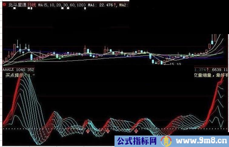 买点:B1 AND B2 AND B3 AND B4 AND B5 AND B6 AND B7 AND B8 AND B9 AND B10 AND (CLOSE-OPEN)>=(UPR-BBIBOLL) AND V/REF(V,1)>=1.9,colorFF00FF,linethick0;