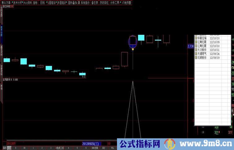 5、运用:打开任意一个K线图——点指标-----就可以看到你刚才导入的公式名称-----双击它-----你刚才选择的副图上就会出现这个指标了。