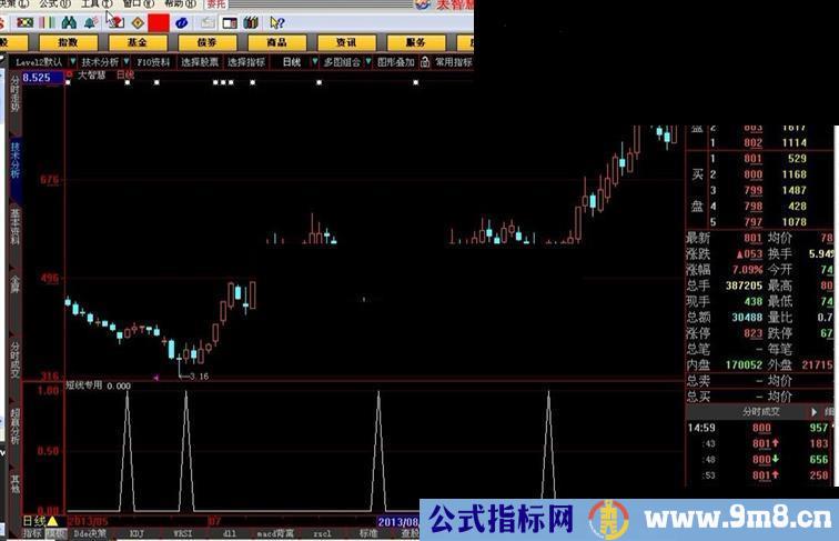买:=LLV(DX,2)=LLV(DX,7) AND COUNT(DX<0,2) AND CROSS(DX,MA(DX,2));