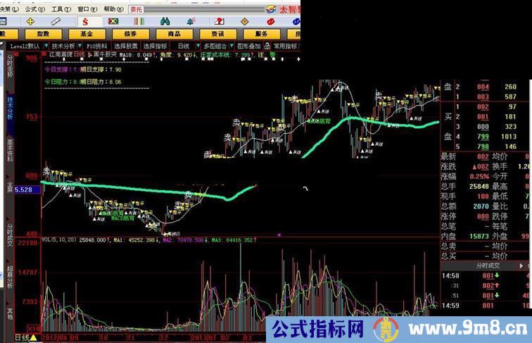 庄家成本线:(5*A1+4*A2+3*A3+2*A4+A5)/15,Color98FF00,linethick5;