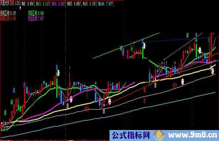 DRAWTEXTREL(128,30.5,'风险区域:'+NUMTOSTR(COST(55))),COLOR00FF00;