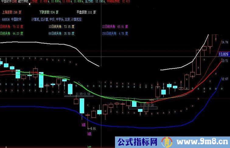 DRAWTEXTREL(220,150,'13日线夹角: '+NUMTOSTRN(Q2,2)+' 度'),COLOR00DDEE;