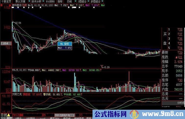 该指标是本坛老师”太阳须“的一个通达信副图指标,我把它改编为大智慧副图指标,并作简易处理。 因为太阳须在发帖时未曾加密,所以我也秉承他共享的意愿,不作加密处理。 为表对太阳须劳动成果的感谢,我特意把指标命名为:太阳之光。