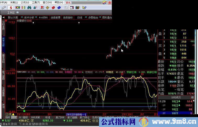 顶部区域:(中期线80) AND (REF(短期线,1)>95 OR REF(短期线,2)>95 ) AND 长期线>60 AND 短期线<83.5
